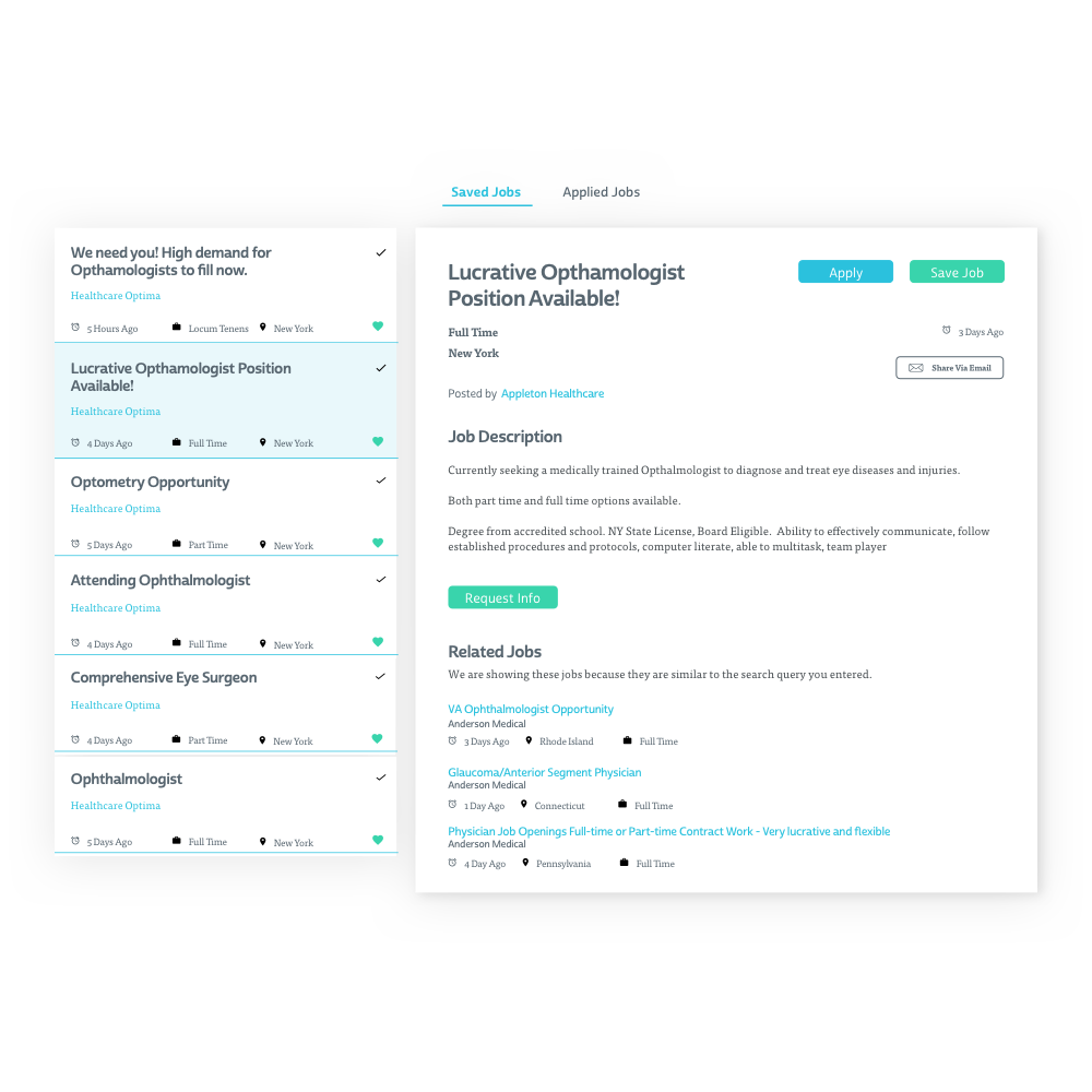 Run a search in seconds, right from our homepage, and see fresh opportunities instantly. No waiting, no complicated setup — just quick results tailored to your specialty and desired location.